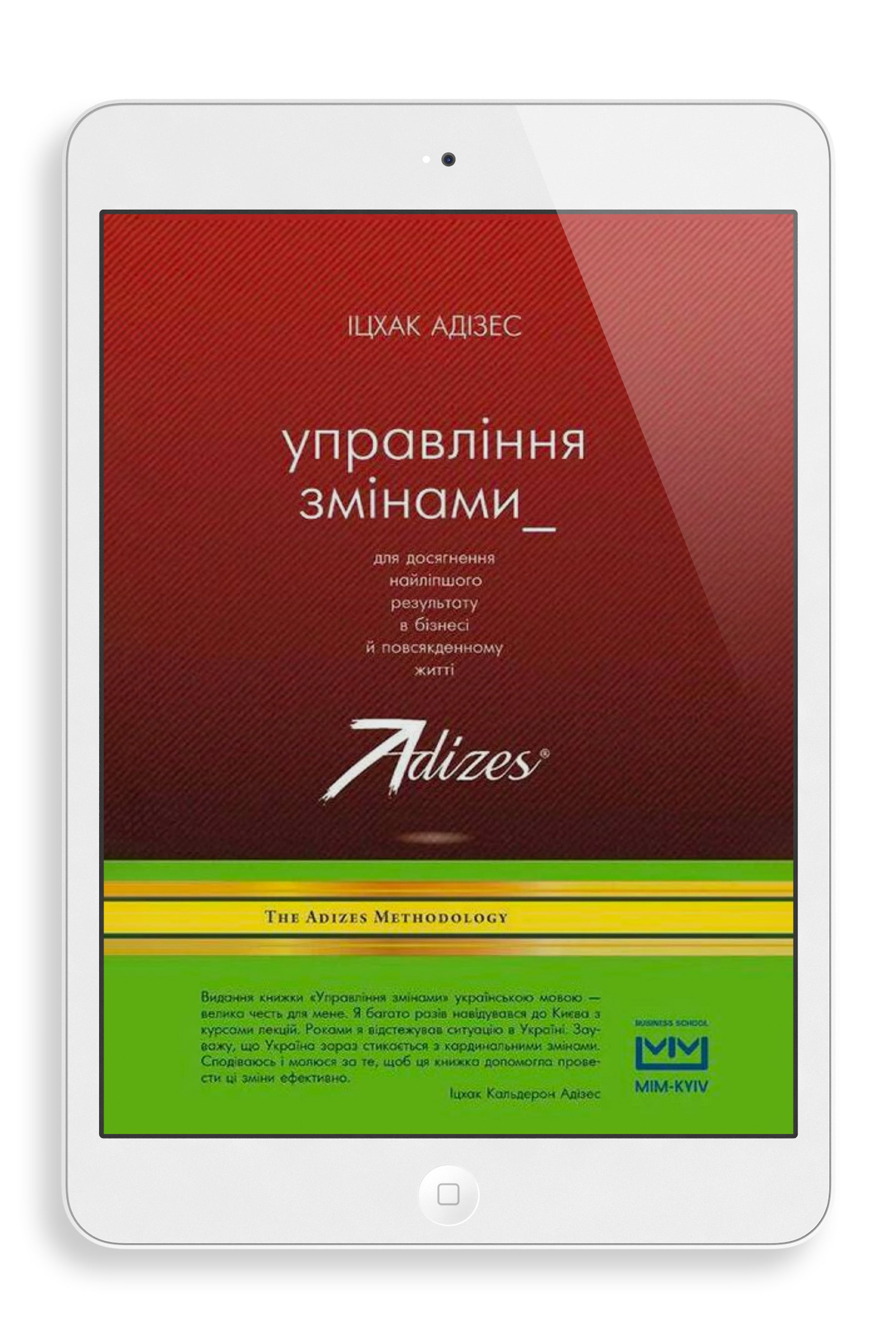 У книзі «Управління змінами» доктора Іцхака Адізеса, знаного тренера з лідерства й консультанта з менеджменту, здійснюється скрупульозний аналіз імовірних проблем і «хвороб», що трапляються в організаціях і родинах. Життя — це невпинні зміни. Зміни тривають постійно, спричинюючи конфлікти. І лише від кожного з нас залежить, чи стануть вони проблемою, чи перетворяться на можливості.